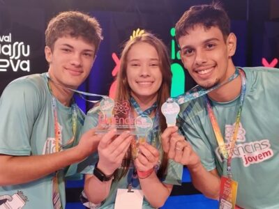 Três alunos do programa de formação de desenvolvedores do Instituto SISMETRO, Esdras Furmanovicz, Júlia Zimmermann e Leonardo Maciel – conquistaram